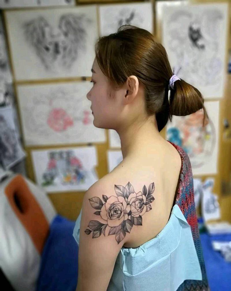• 女性大花胸纹身_43张霸气漂亮的女性大花胸纹身图案作品