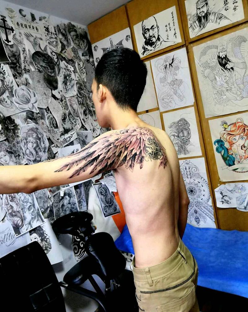 • 纹身吧推荐的披肩图腾半胛纹身图案作品展示