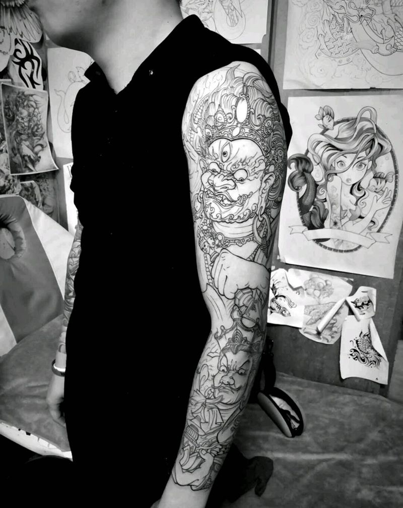 当前位置: 首页 >吉林省长春市纹身店-长春義色刺青纹身图案>花臂线条纹身图片