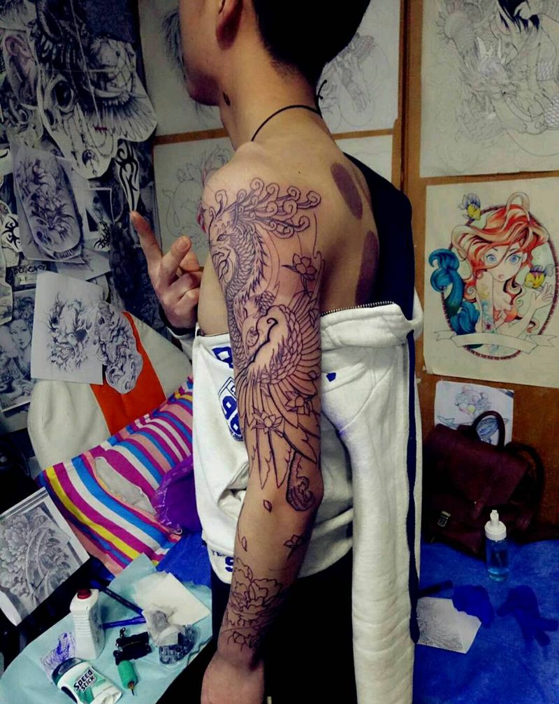 当前位置: 首页 >吉林省长春市纹身店-长春義色刺青纹身图案>花臂线条未完成!纹身图片