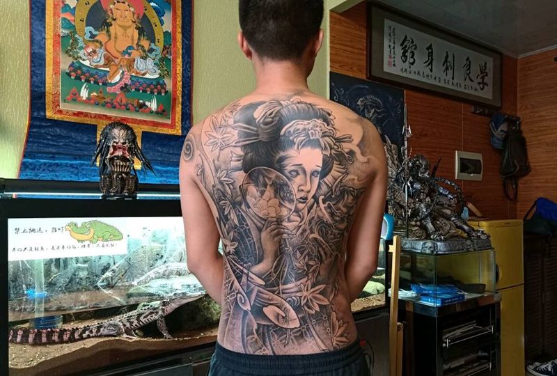 当前位置: 首页 >吉林省吉林市纹身店-少帅刺青工作室纹身图案>满背艺妓纹身图片_背部新传统纹身图案