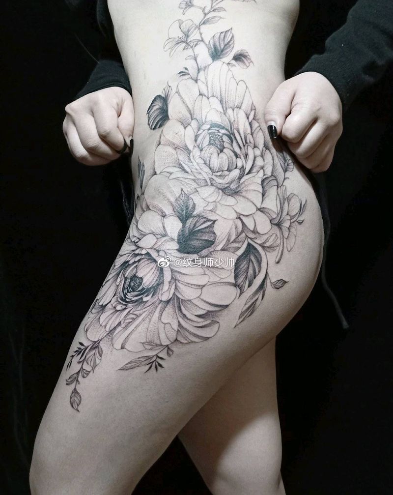 当前位置: 首页 >吉林省吉林市纹身店-少帅刺青工作室纹身图案>侧腰素花纹身图片_臀部纹身图案