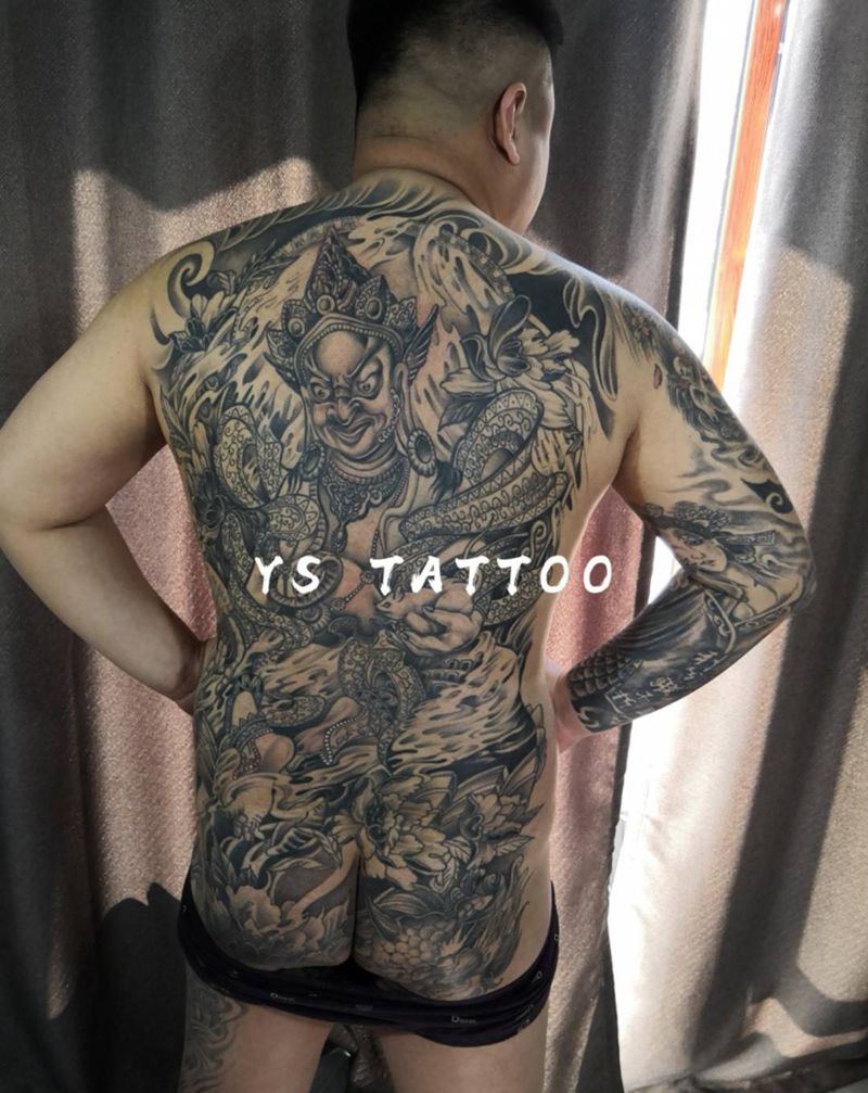 黑灰满背纹身图案