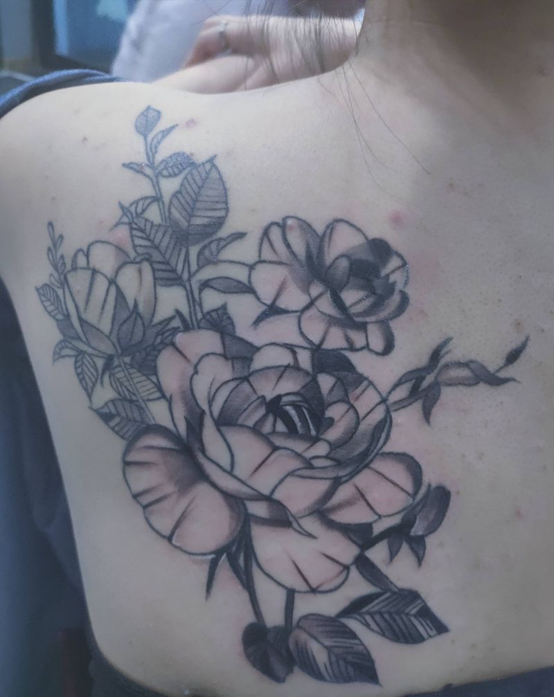 当前位置: 首页 >吉林省长春市纹身店-雾刺青工作室纹身图案>后背素花纹身图片_背部点刺素花纹身图案