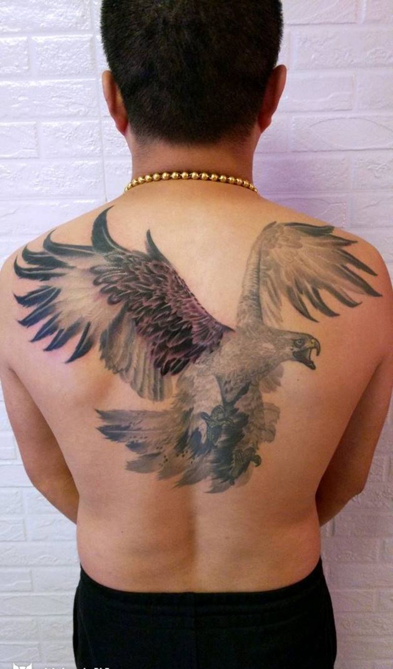 鹰纹身图片_背部欧美写实纹身图案