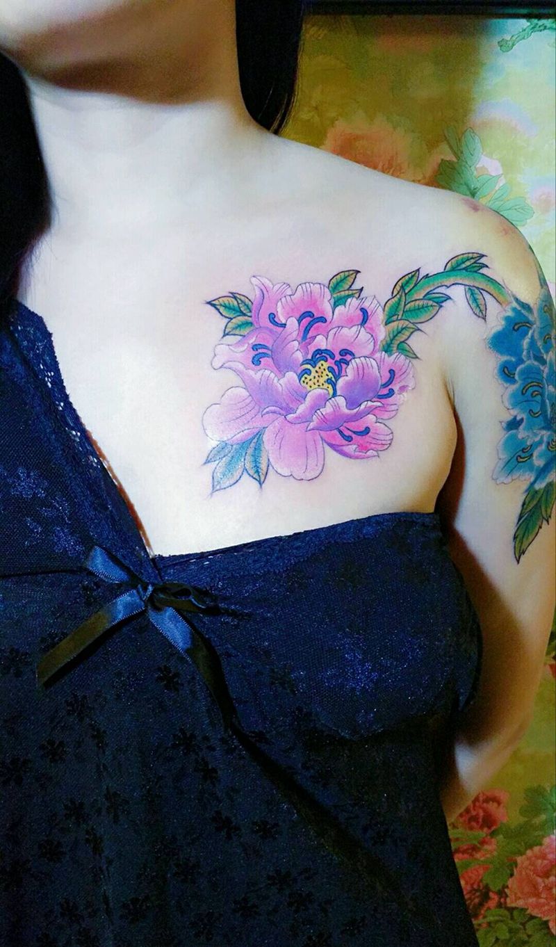 当前位置: 首页 >吉林省四平市纹身店-艳阳天刺青纹身图案>牡丹纹身图片_胸部手臂传统植物成品纹身图案