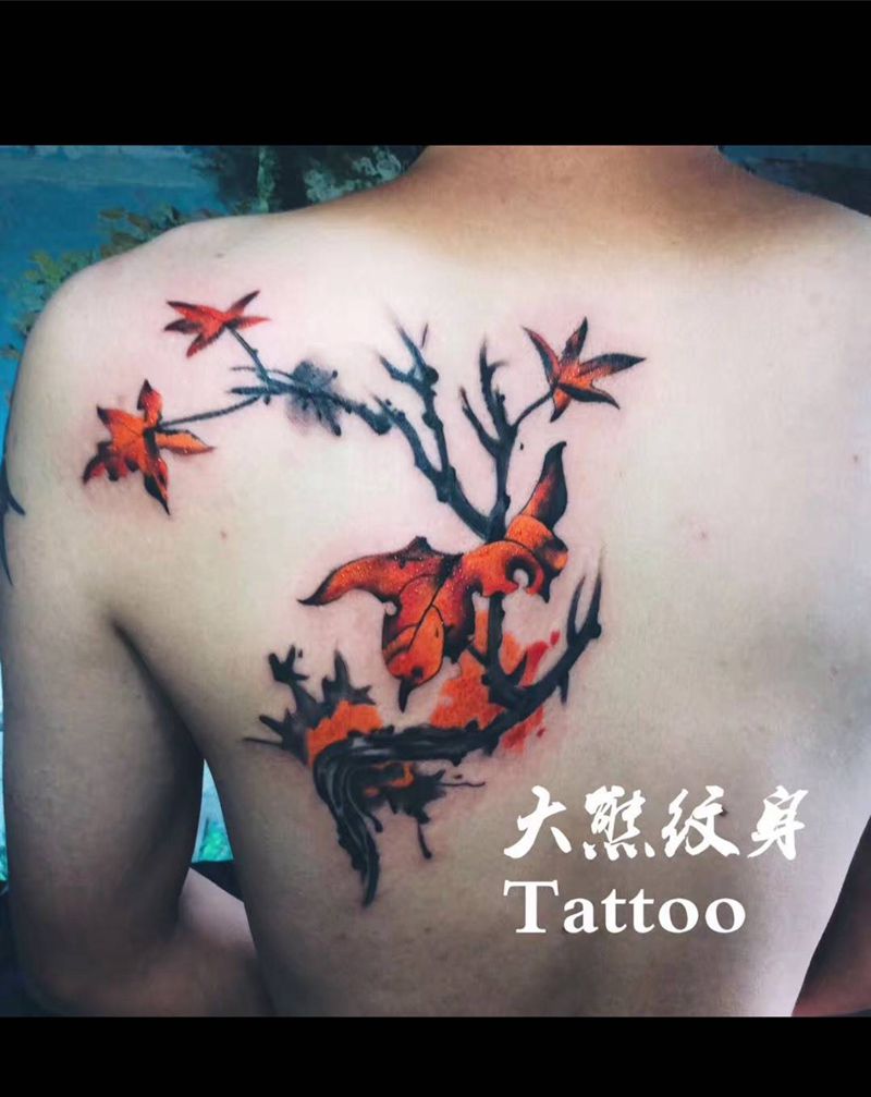 当前位置: 首页 >吉林省长春市纹身店-空亥刺青纹身图案>枫叶纹身图片_成品背部传统植物纹身图案