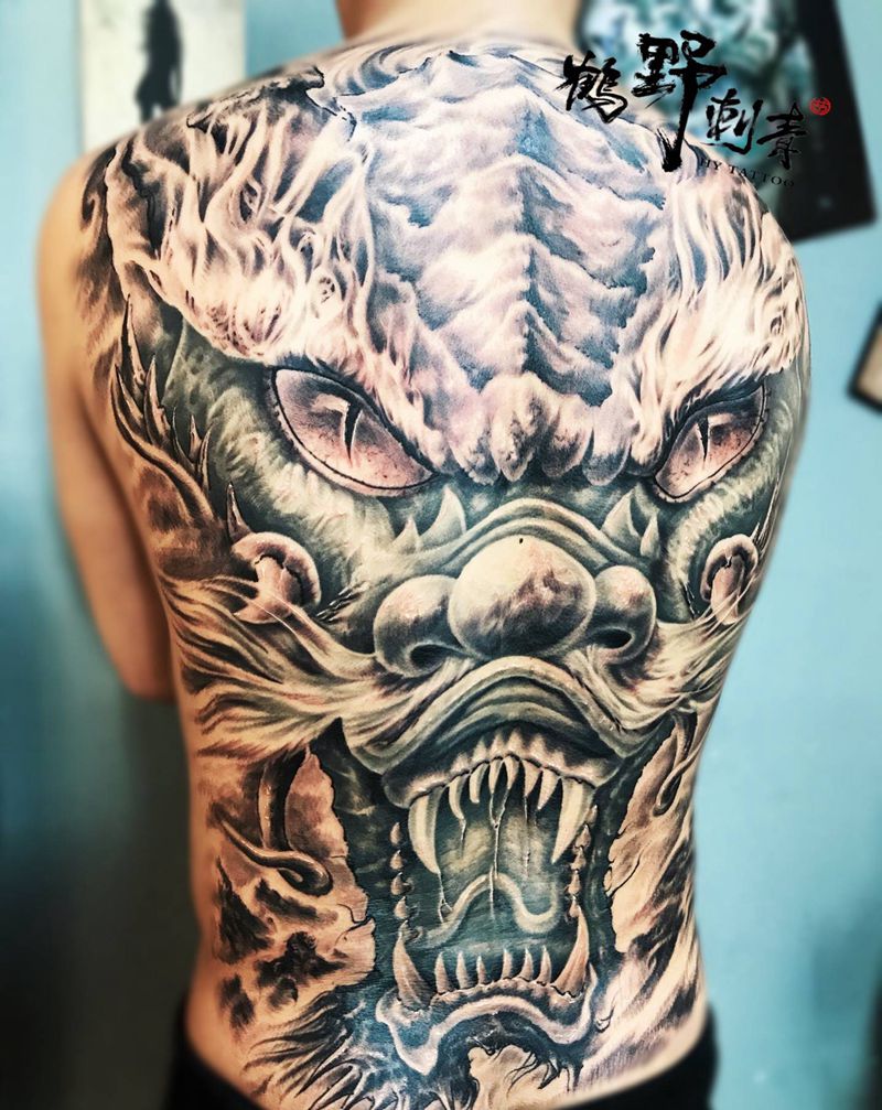• 黑灰满背纹身图案