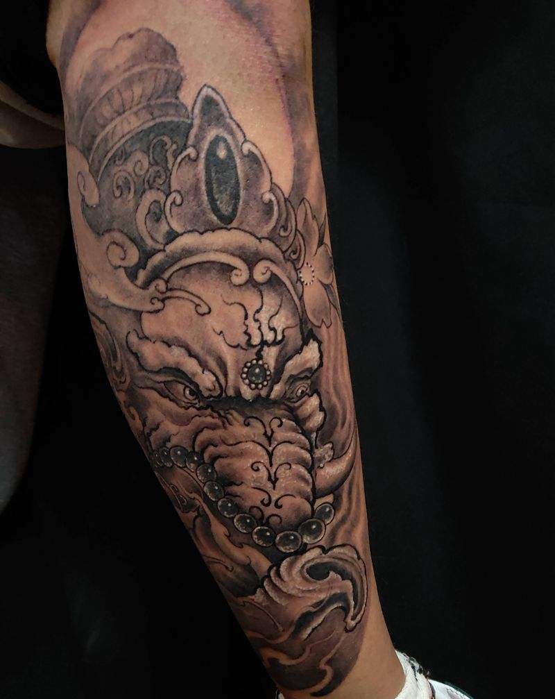 当前位置: 首页 >吉林省长春市纹身店-雕翼刺青培训纹身图案>象神纹身图片_新传统纹身图案