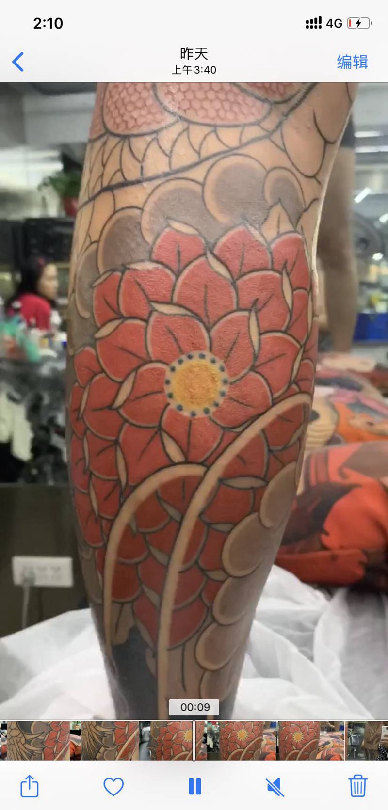 • T网红王老大花腿龙纹身图片_腿部新传统纹身图案