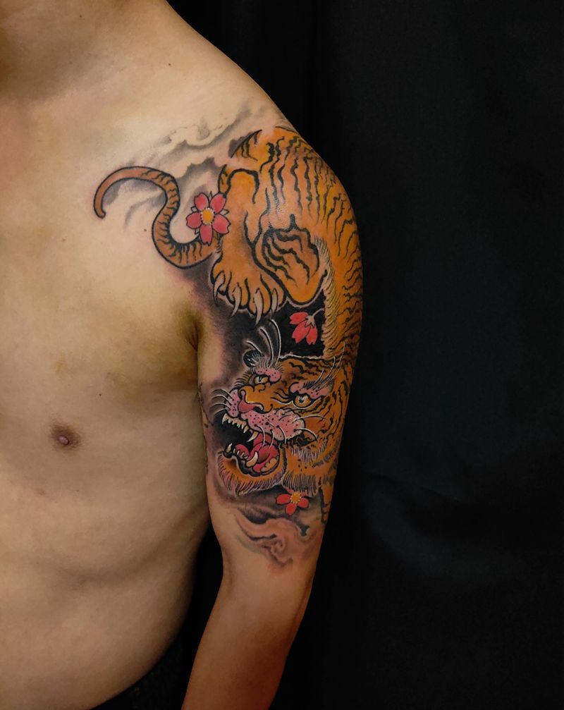 当前位置: 首页 >吉林省长春市纹身店-雕翼刺青培训纹身图案>老虎纹身图片_新传统Old School纹身图案
