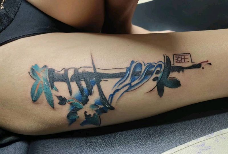 • T关于私处得爱!纹身图片_成品腹部清新字符图腾纹身图案