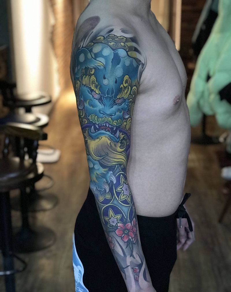 当前位置: 首页 >吉林省吉林市纹身店-律动刺青纹身图案>唐狮纹身图片_手臂新传统纹身图案