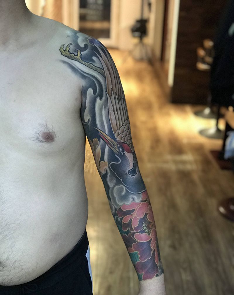 当前位置: 首页 >吉林省吉林市纹身店-律动刺青纹身图案>仙鹤花臂纹身图片_肩部手臂新传统纹身图案