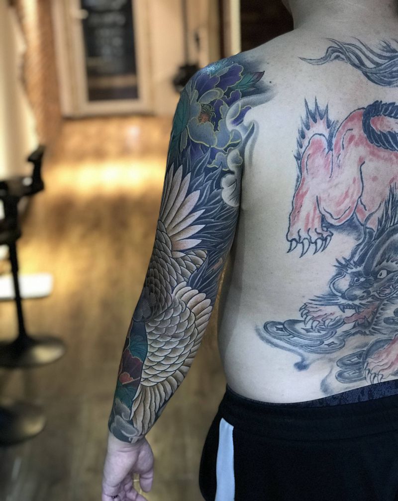 当前位置: 首页 >吉林省吉林市纹身店-律动刺青纹身图案>仙鹤花臂纹身图片_肩部手臂新传统纹身图案