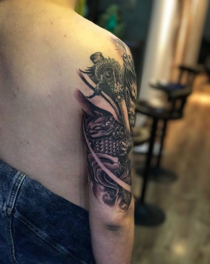 • 纹身吧推荐的披肩图腾半胛纹身图案作品展示