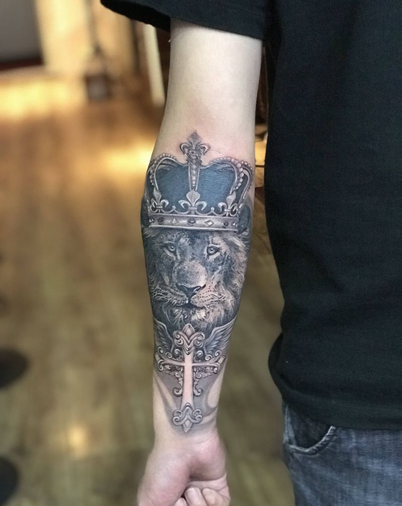 当前位置: 首页 >吉林省吉林市纹身店-律动刺青纹身图案>狮子纹身图片_手臂欧美写实狮子纹身图案