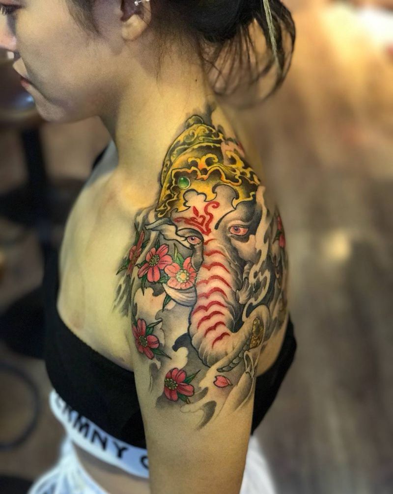 当前位置: 首页 >吉林省吉林市纹身店-律动刺青纹身图案>象纹身图片_成品肩部手臂颈部背部传统动物鬼神原创宗教纹身图案