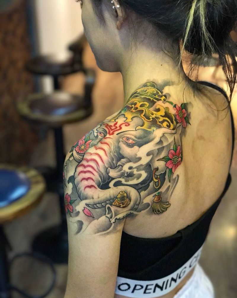 当前位置: 首页 >吉林省吉林市纹身店-律动刺青纹身图案>象纹身图片_成品肩部手臂颈部背部传统动物鬼神原创宗教纹身图案