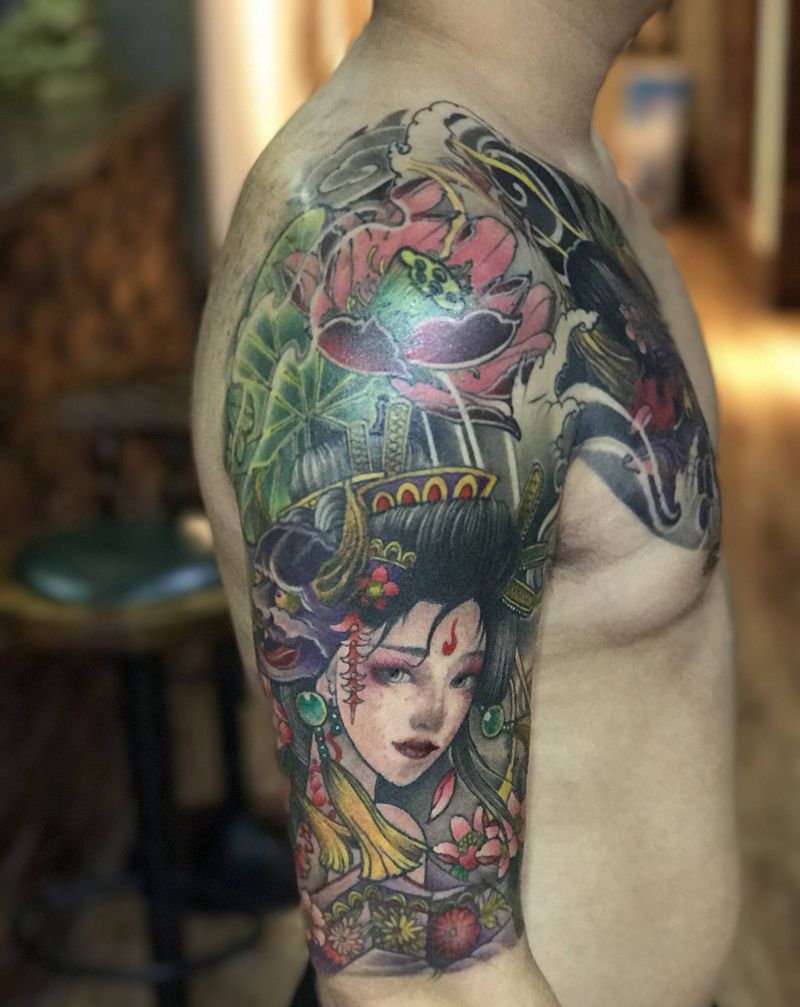 遮盖图腾纹身图片_肩部老传统新传统纹身图案