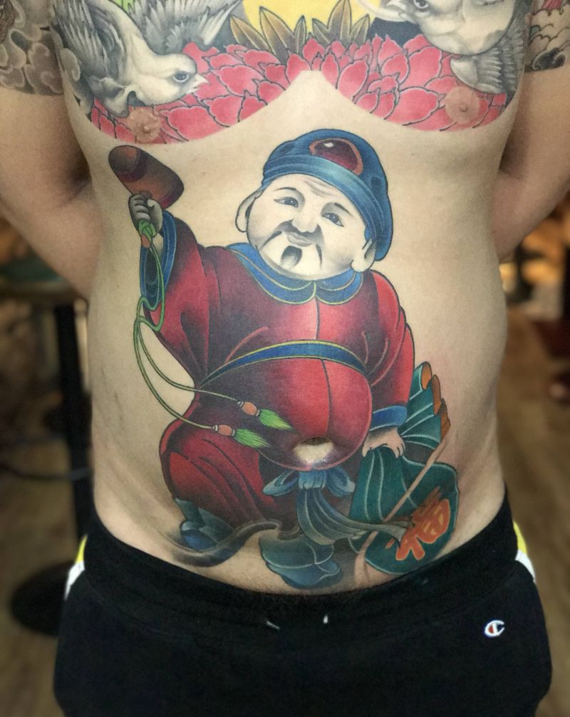 大黑天财神纹身图片_胸部腹部新传统纹身图案