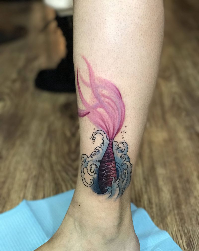 鱼尾遮盖纹身图片_腿部Old School纹身图案