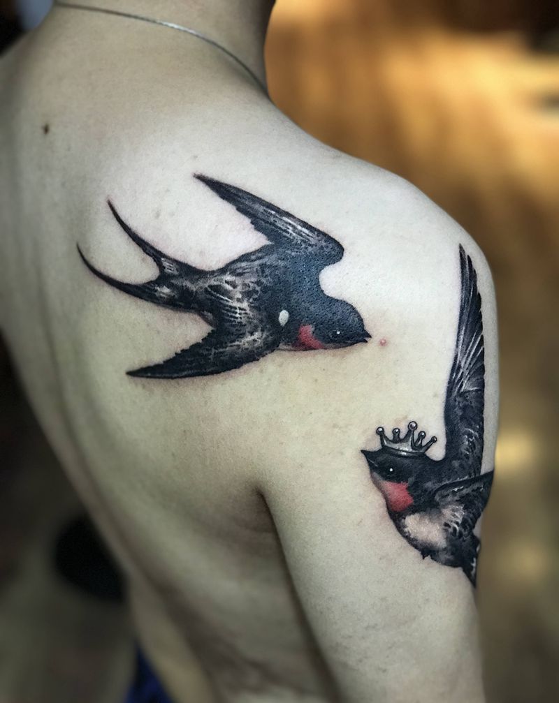 当前位置: 首页 >吉林省吉林市纹身店-律动刺青纹身图案>燕子纹身图片_肩部手臂欧美写实燕子纹身图案