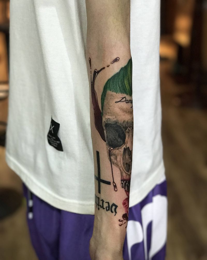 当前位置: 首页 >吉林省吉林市纹身店-律动刺青纹身图案>小丑纹身图片_手臂欧美写实纹身图案
