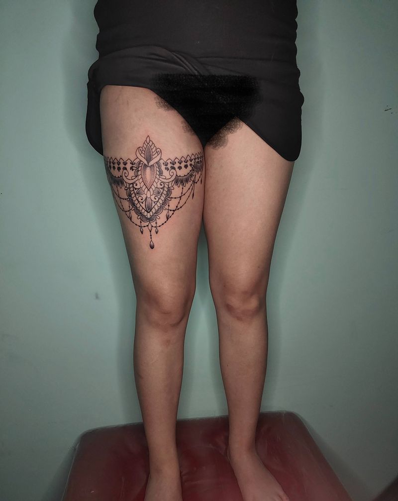 当前位置: 首页 >吉林省长春市纹身店-雾刺青工作室纹身图案>大腿蕾丝纹身图片_腿部点刺纹身图案