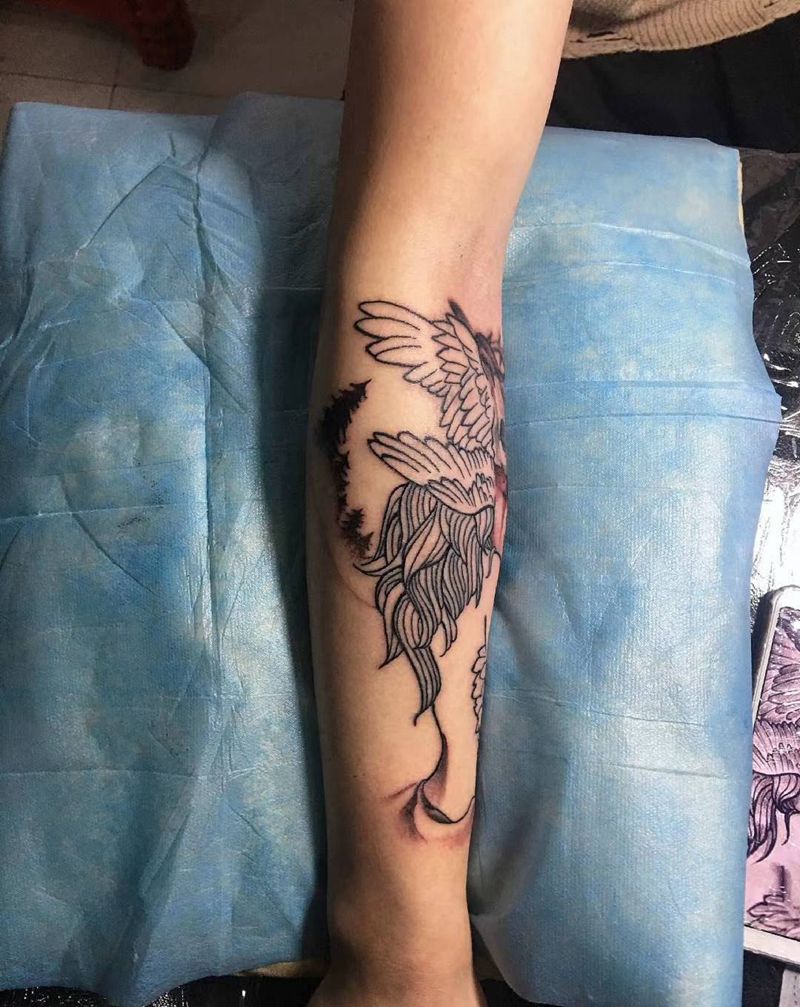 当前位置: 首页 >吉林省长春市纹身店-雾刺青工作室纹身图案>小臂纹身图片_手臂羽毛鸟骷髅纹身图案