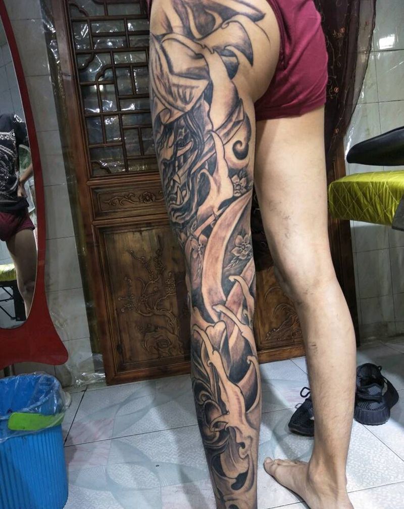 • T网红王老大花腿龙纹身图片_腿部新传统纹身图案