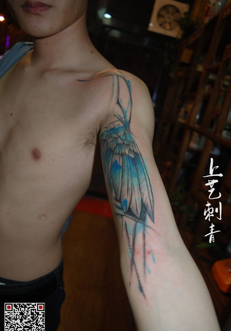 当前位置: 首页 >吉林省通化市纹身店-上艺刺青纹身图案>水彩翅膀纹身图片_水墨点刺纹身图案