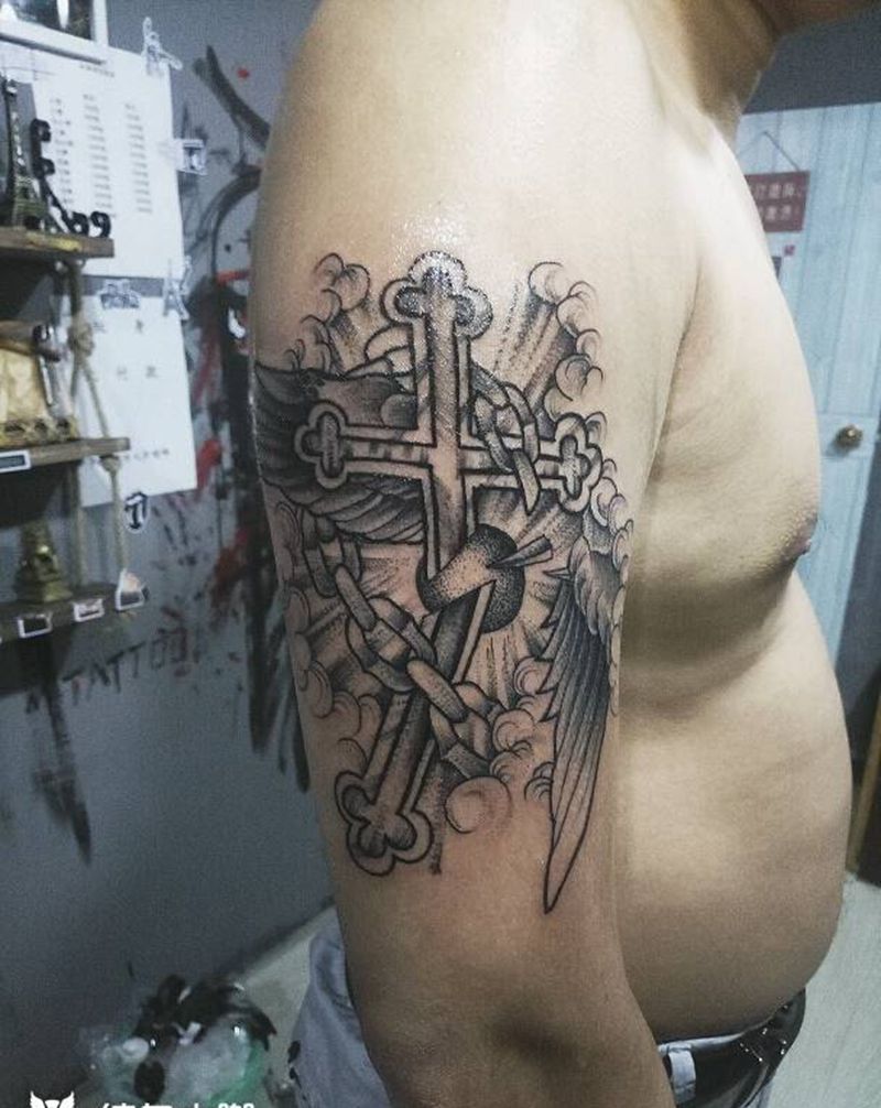 • 纹身吧推荐的披肩图腾半胛纹身图案作品展示