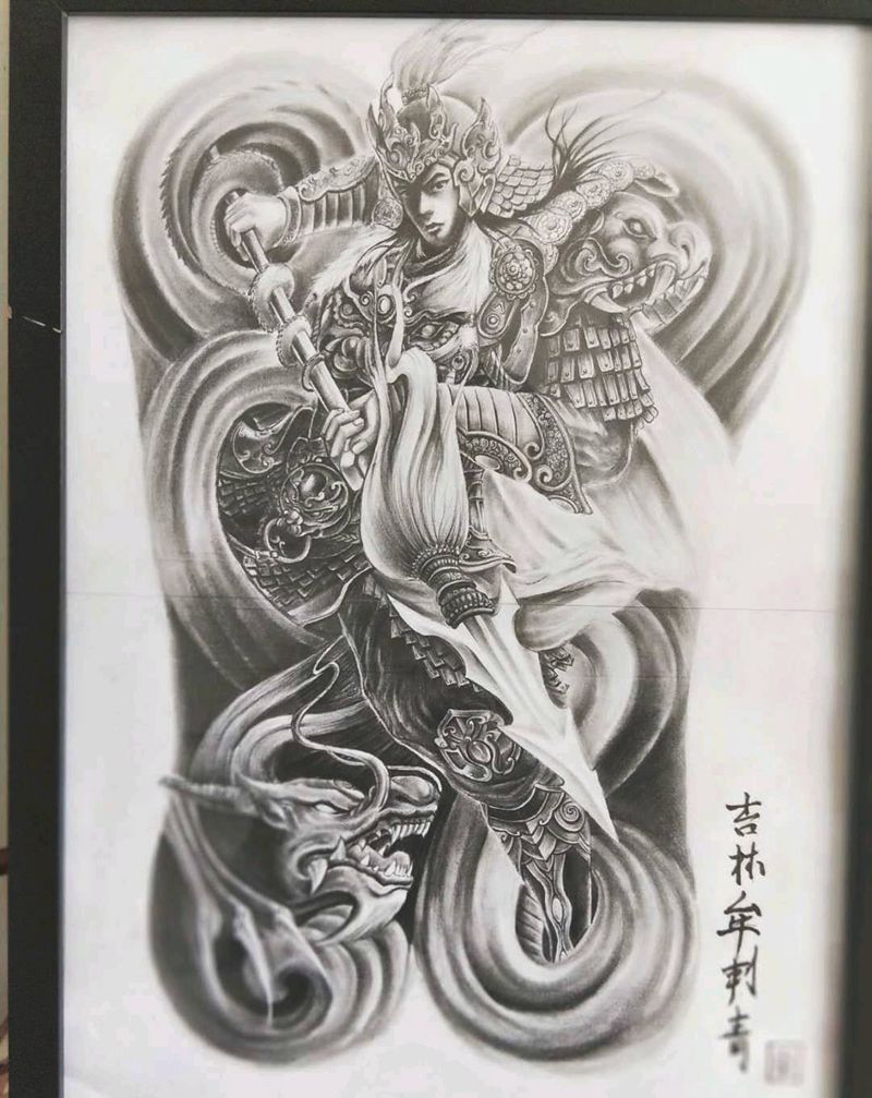 当前位置: 首页 >吉林省吉林市纹身店-牟刺青纹身图案>龙临纹身图片_背部传统人物手稿纹身图案