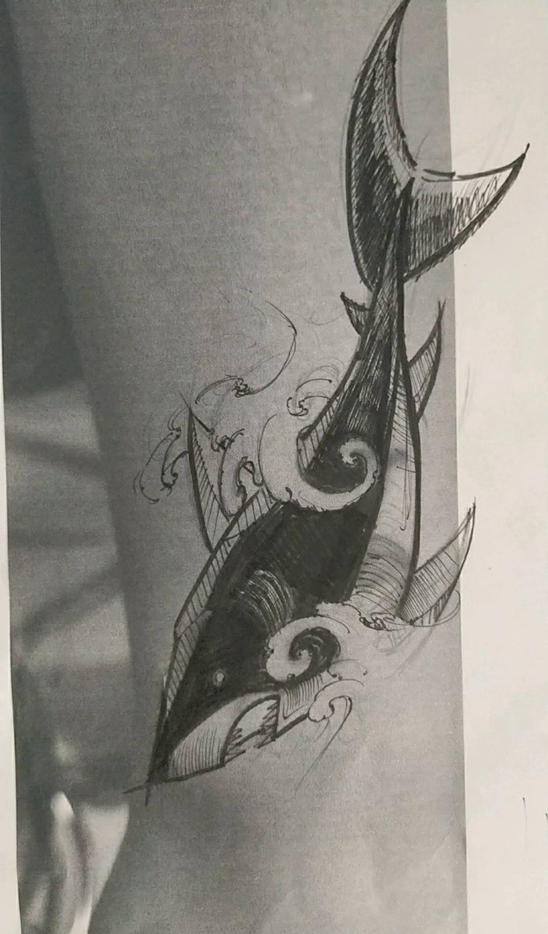 当前位置: 首页 >吉林省吉林市纹身店-牟刺青纹身图案>鲨鱼遮盖纹身图片_手臂几何水墨鲨鱼遮盖纹身图案