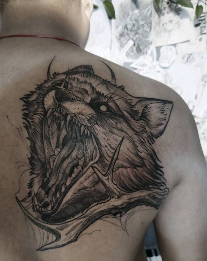 当前位置: 首页 >吉林省吉林市纹身店-牟刺青纹身图案>大灰狼纹身图片_肩部几何点刺纹身图案