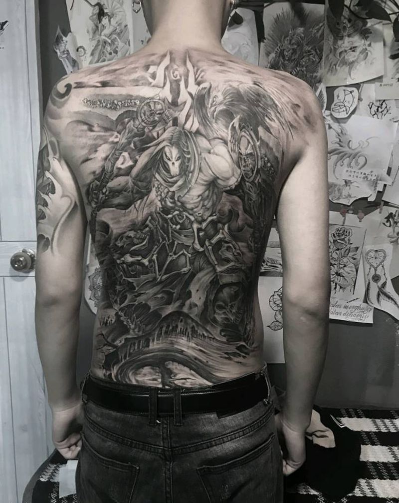 暗黑血统纹身图片_背部欧美写实游戏纹身图案