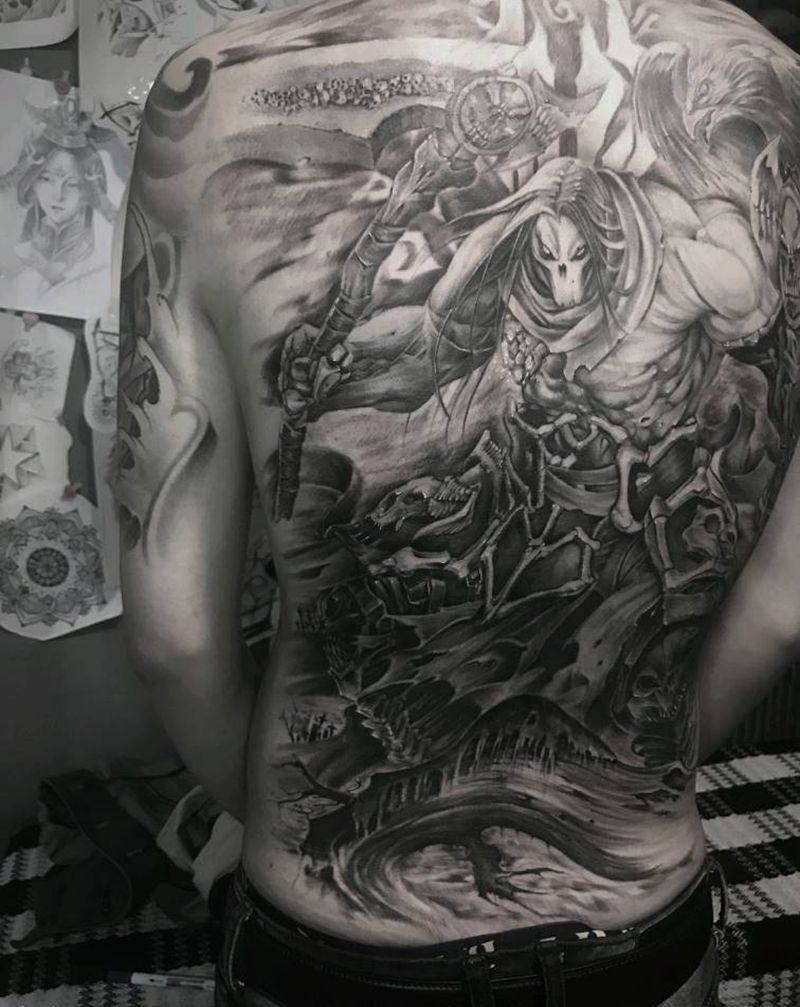 暗黑血统纹身图片_背部欧美写实游戏纹身图案