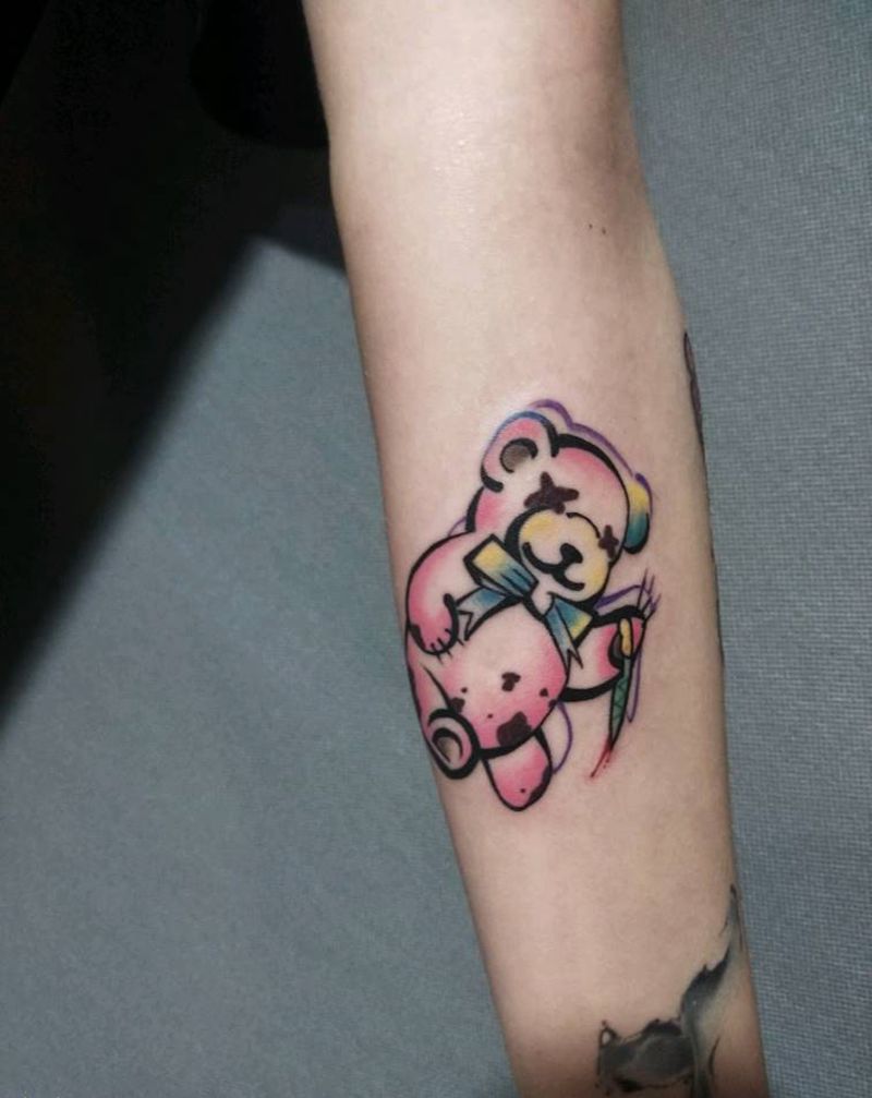 当前位置: 首页 >吉林省吉林市纹身店-牟刺青纹身图案>熊纹身图片_手臂水彩Old School暴力熊纹身图案