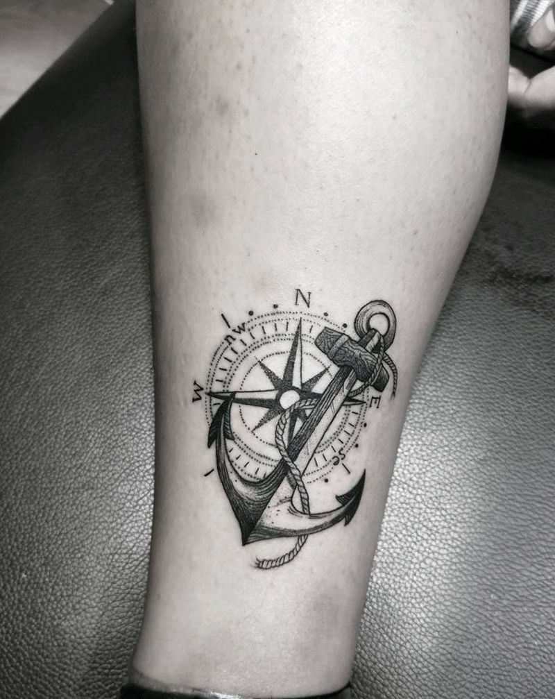 船矛纹身图片_脚部点刺几何船矛 指南针纹身图案