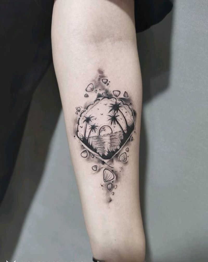 贝壳纹身图片_手臂几何水墨贝壳纹身图案