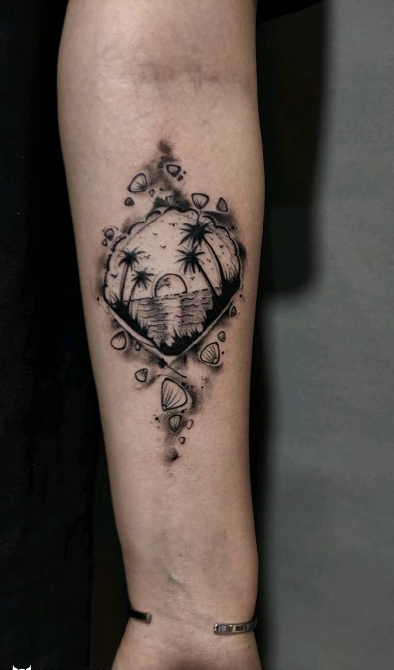 当前位置: 首页 >吉林省吉林市纹身店-牟刺青纹身图案>贝壳纹身图片_手臂几何水墨贝壳纹身图案