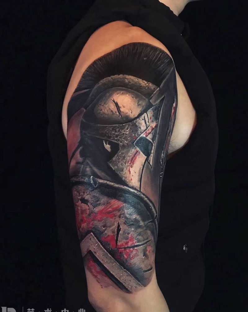 斯巴达纹身图片_肩部手臂纹身图案