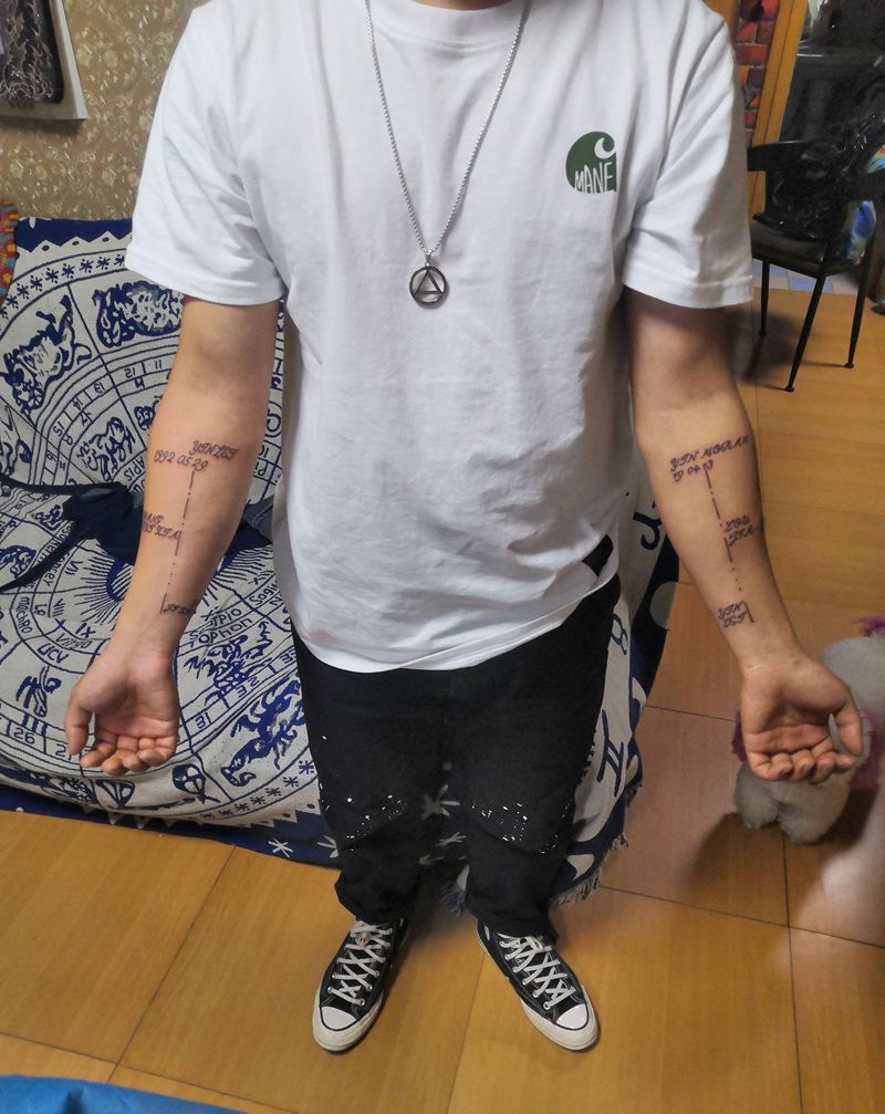 • T家庭图,一家四口生日纪念!纹身图片_手臂纹身图案