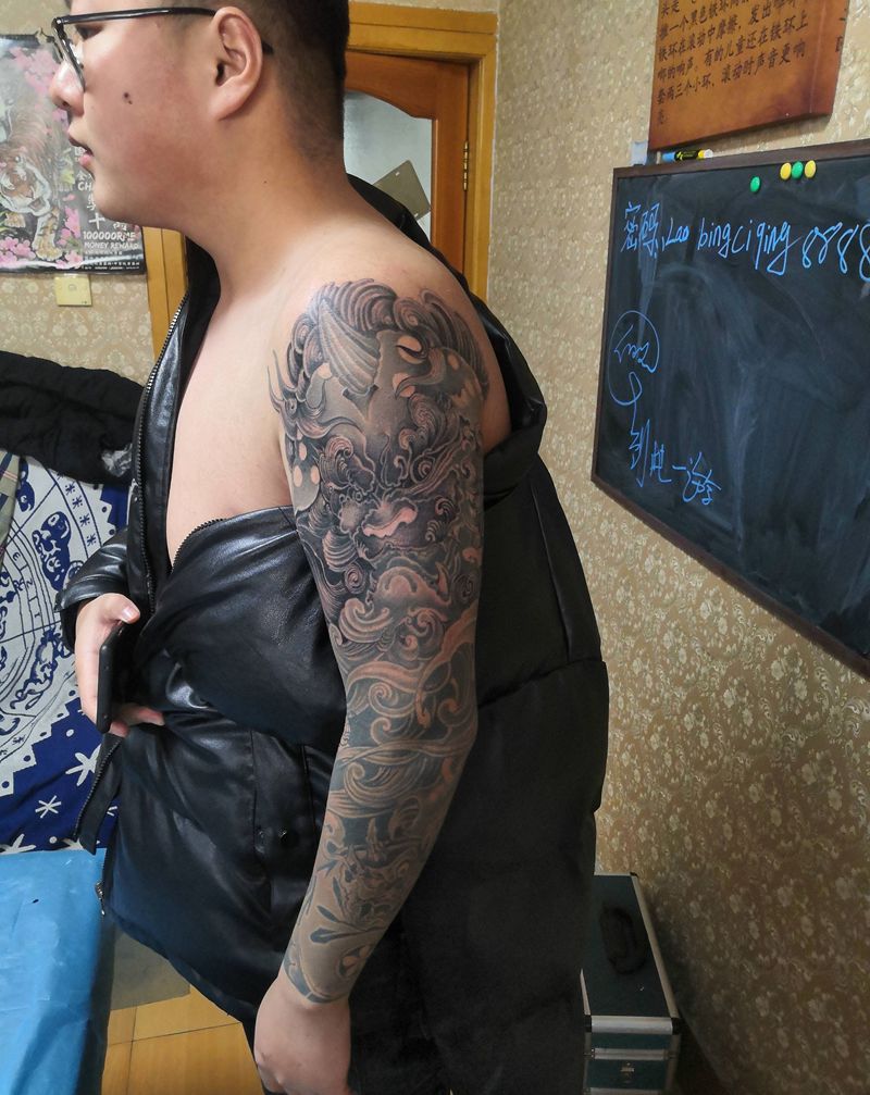 当前位置: 首页 >吉林省松原市纹身店-松原市WJ老兵刺青纹身图案>一只唐狮花臂纹身图片_手臂纹身图案