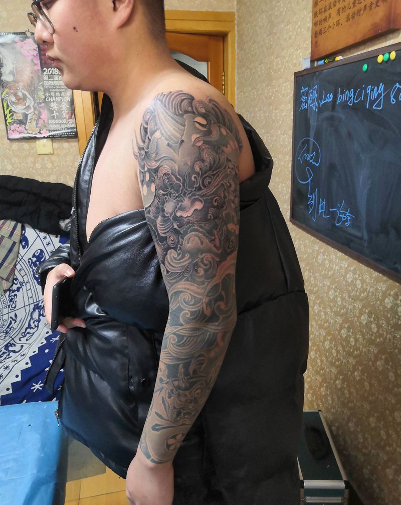 当前位置: 首页 >吉林省松原市纹身店-松原市WJ老兵刺青纹身图案>一只唐狮花臂纹身图片_手臂纹身图案