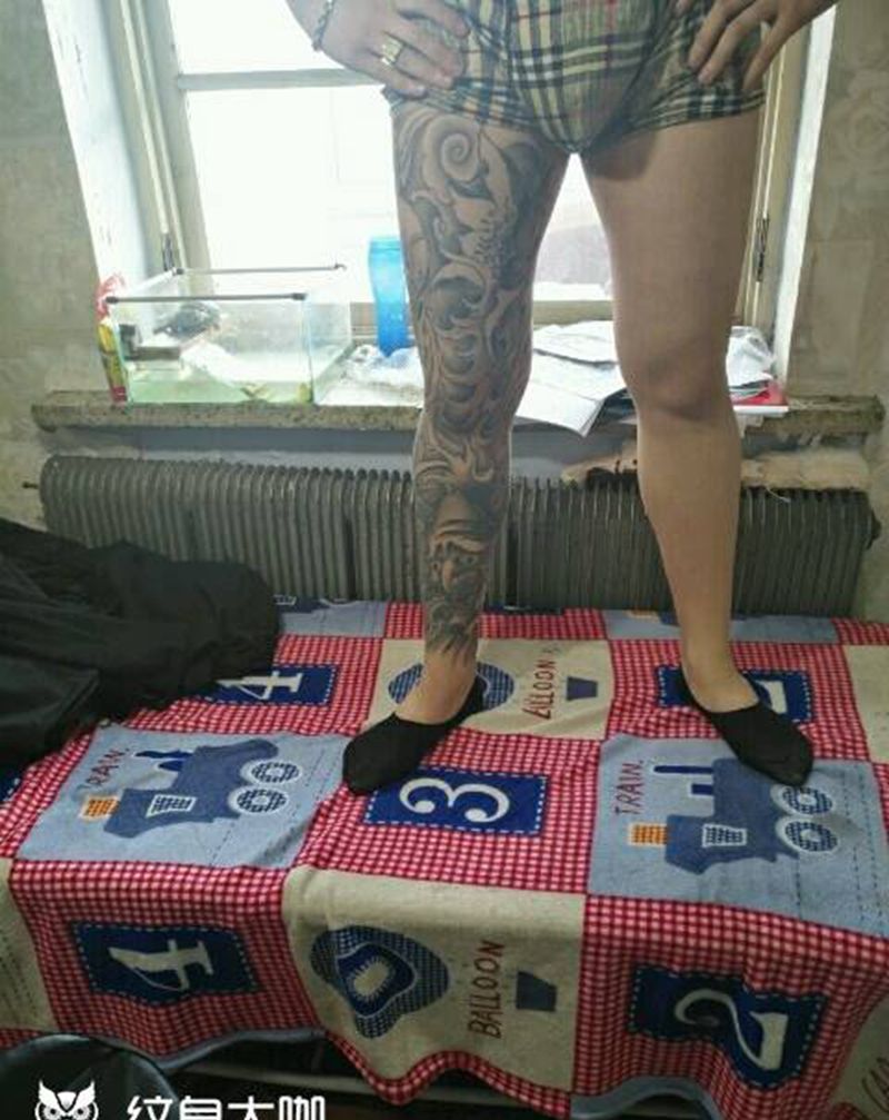 • T网红王老大花腿龙纹身图片_腿部新传统纹身图案