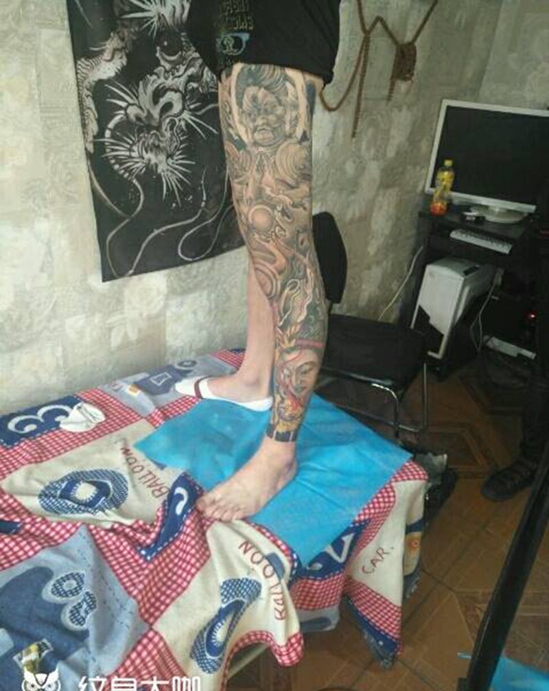 • T网红王老大花腿龙纹身图片_腿部新传统纹身图案