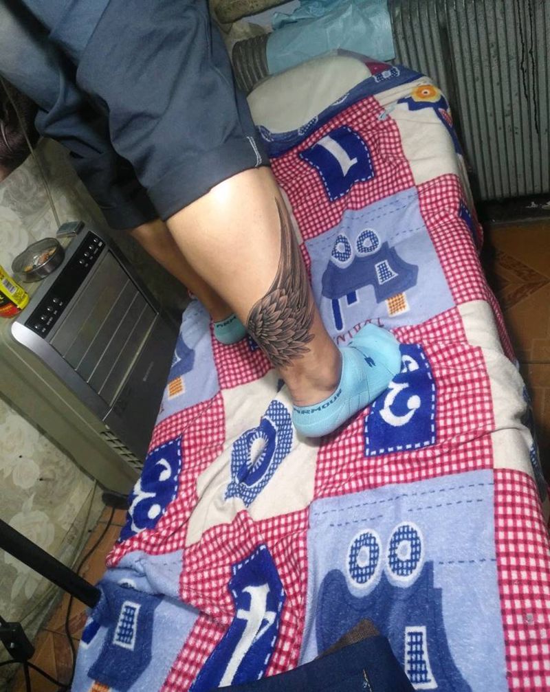 • T网红王老大花腿龙纹身图片_腿部新传统纹身图案