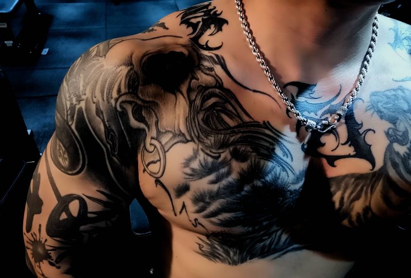 • 男性大花胸_42张优秀的男性大花胸纹身图案图片